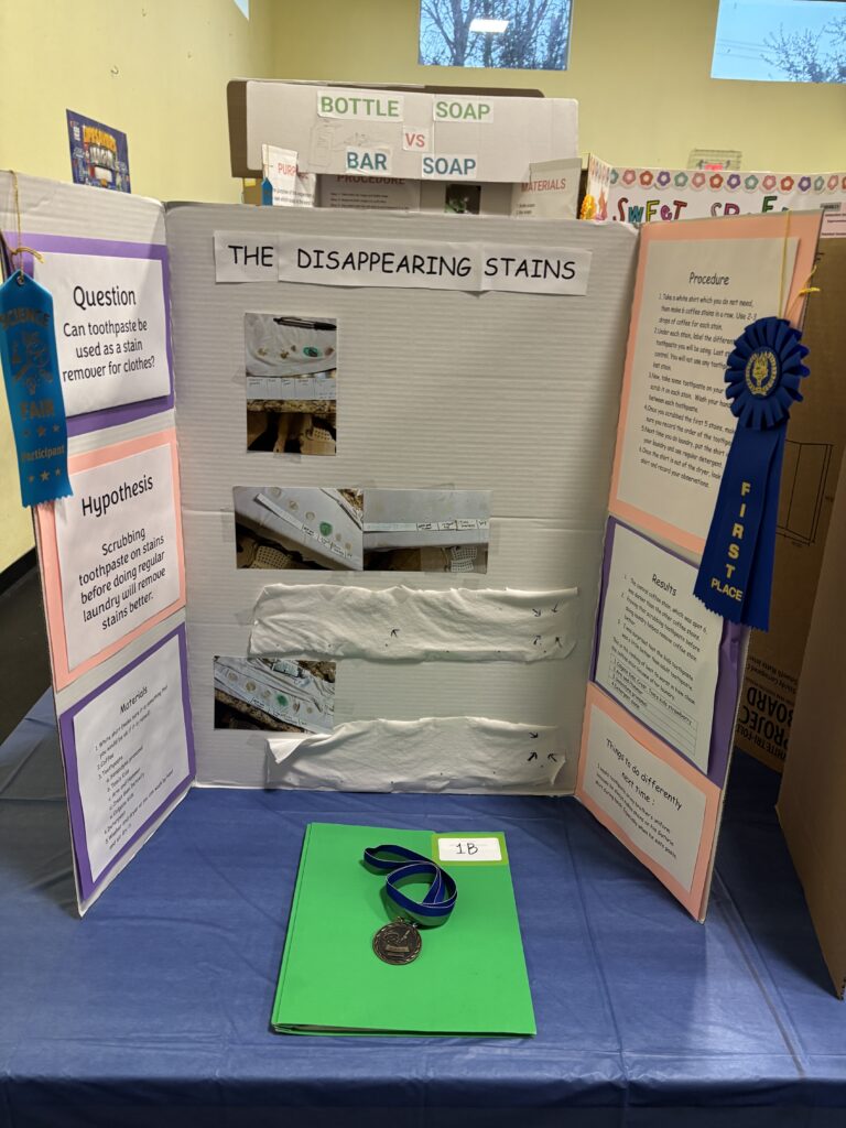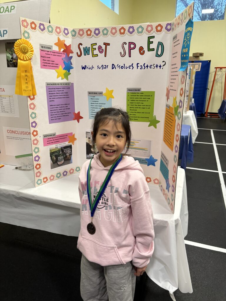 Congratulations to David Dumas in 3rd grade, who received the Grand Prize for his outstanding work on his experiment entitled “Tooth Decay Alert”!